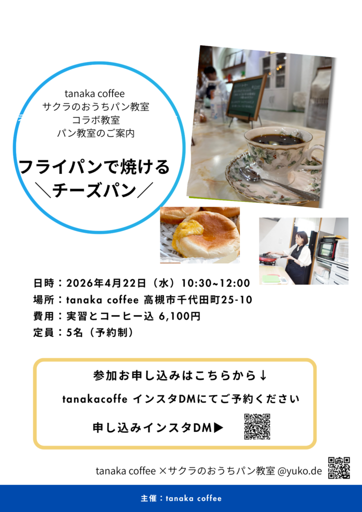 - ▶️高槻出張教室4月22日 フライパンで焼けるチーズパン作りご案内