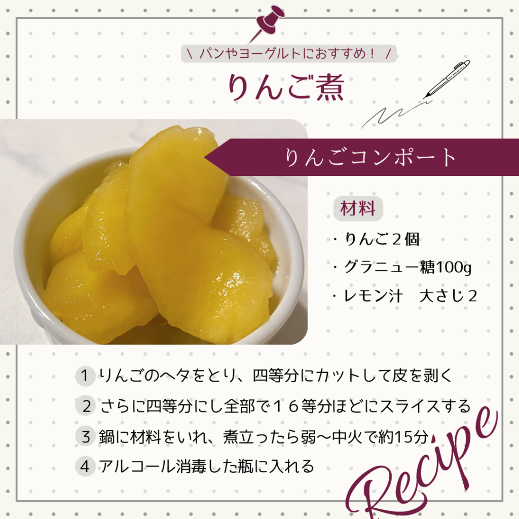 りんごコンポートの作り方はこちら↓