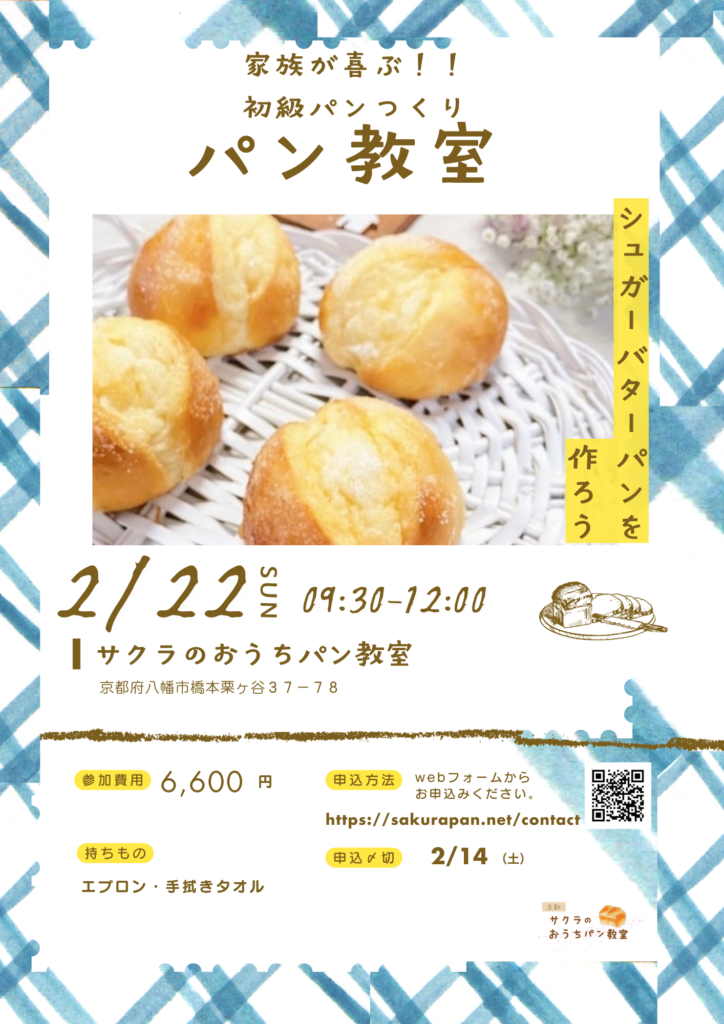 ▶️【初級・体験可】2月シュガーバターパンつくり体験