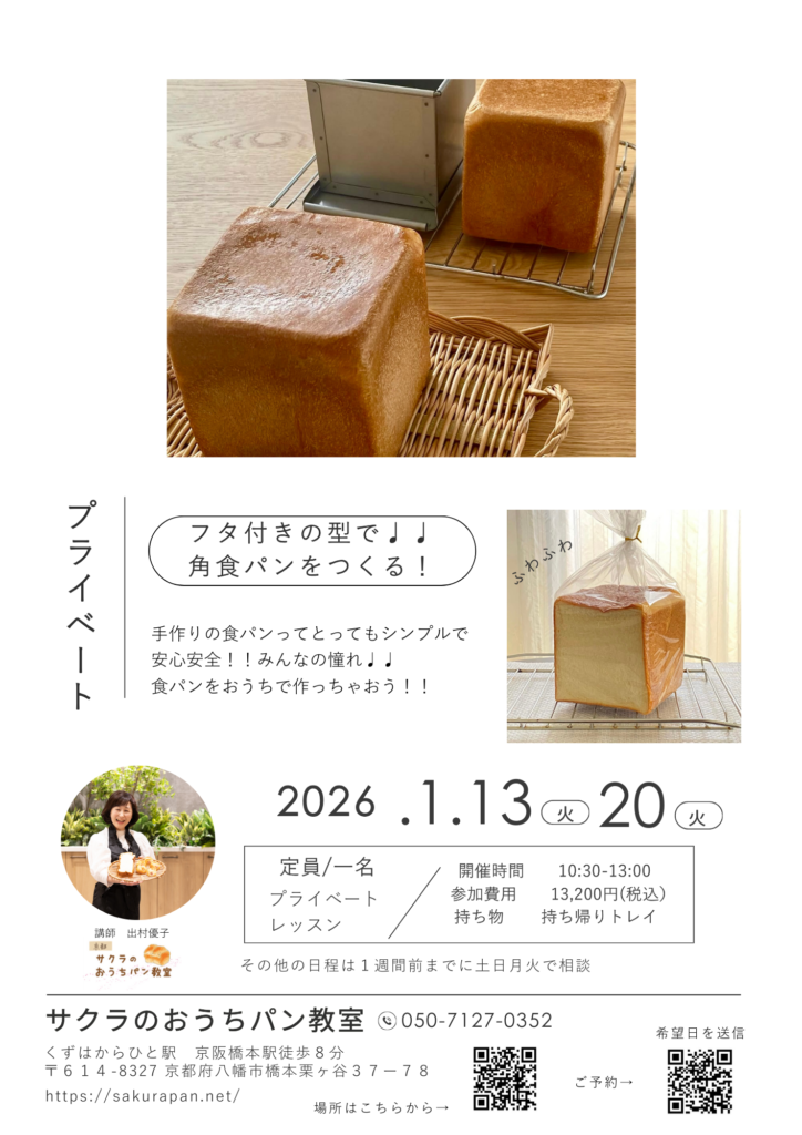 ▶️フタ付き食パンプライベートレッスン2026年好評につき、1月のみ開催決定!